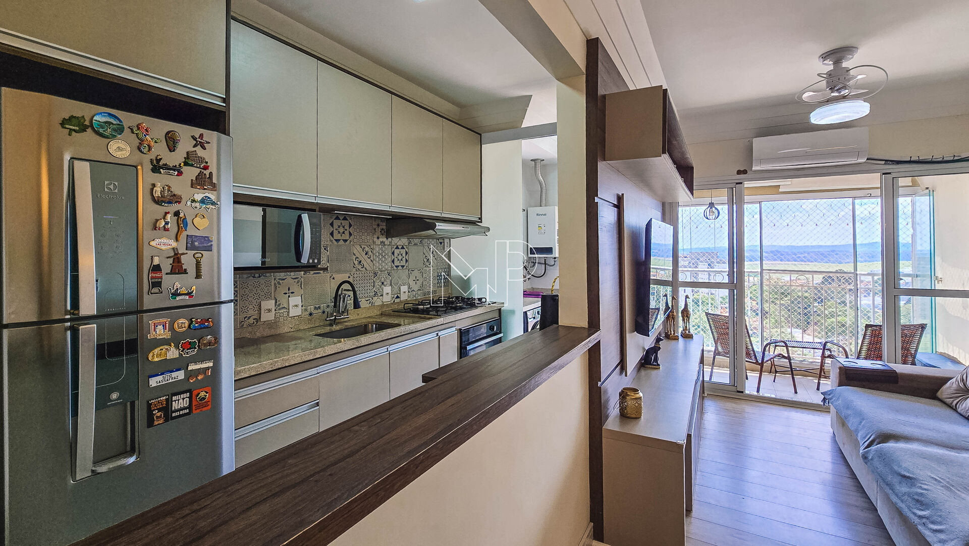São 3 dormitórios, 1 suíte, armários planejados em todos os ambientes, cozinha com cooktop, coifa e forno elétrico, churrasqueira na sacada, ar condicionado, 2 vagas de garagem cobertas.