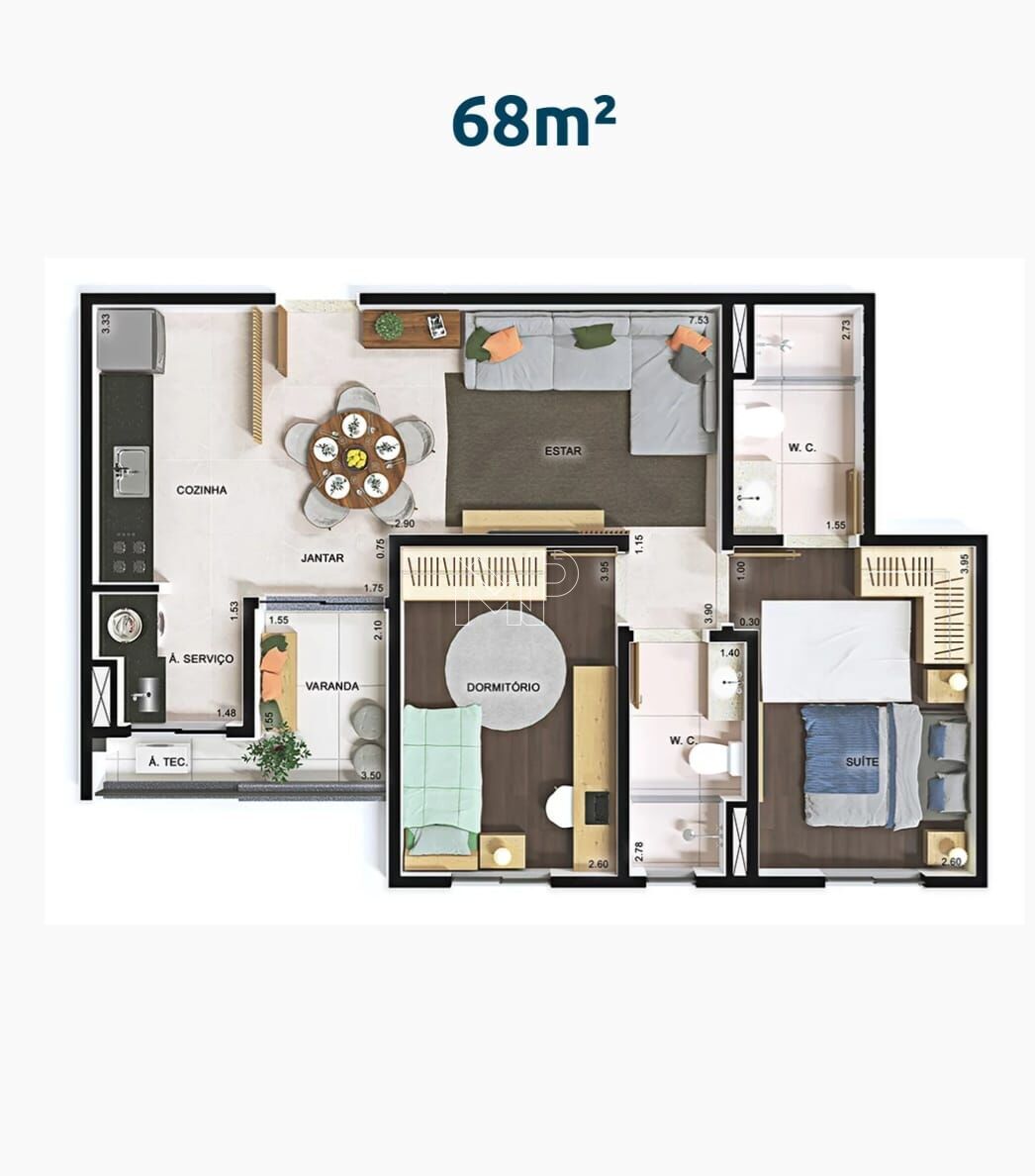 68 m²Previsão de Entrega