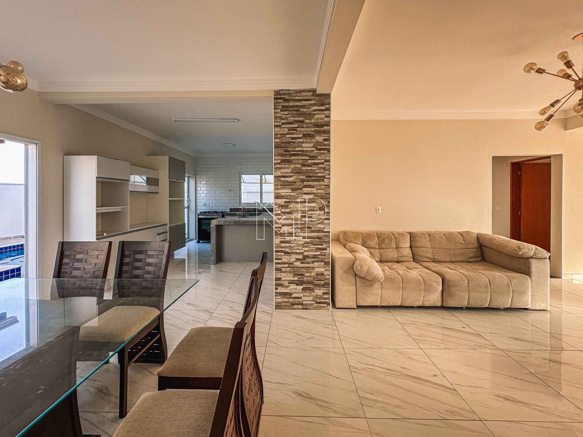 Área de lazer com piscina.