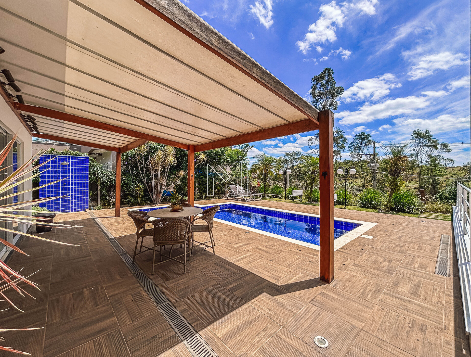 àrea da de churrasqueira integrada com a piscina.