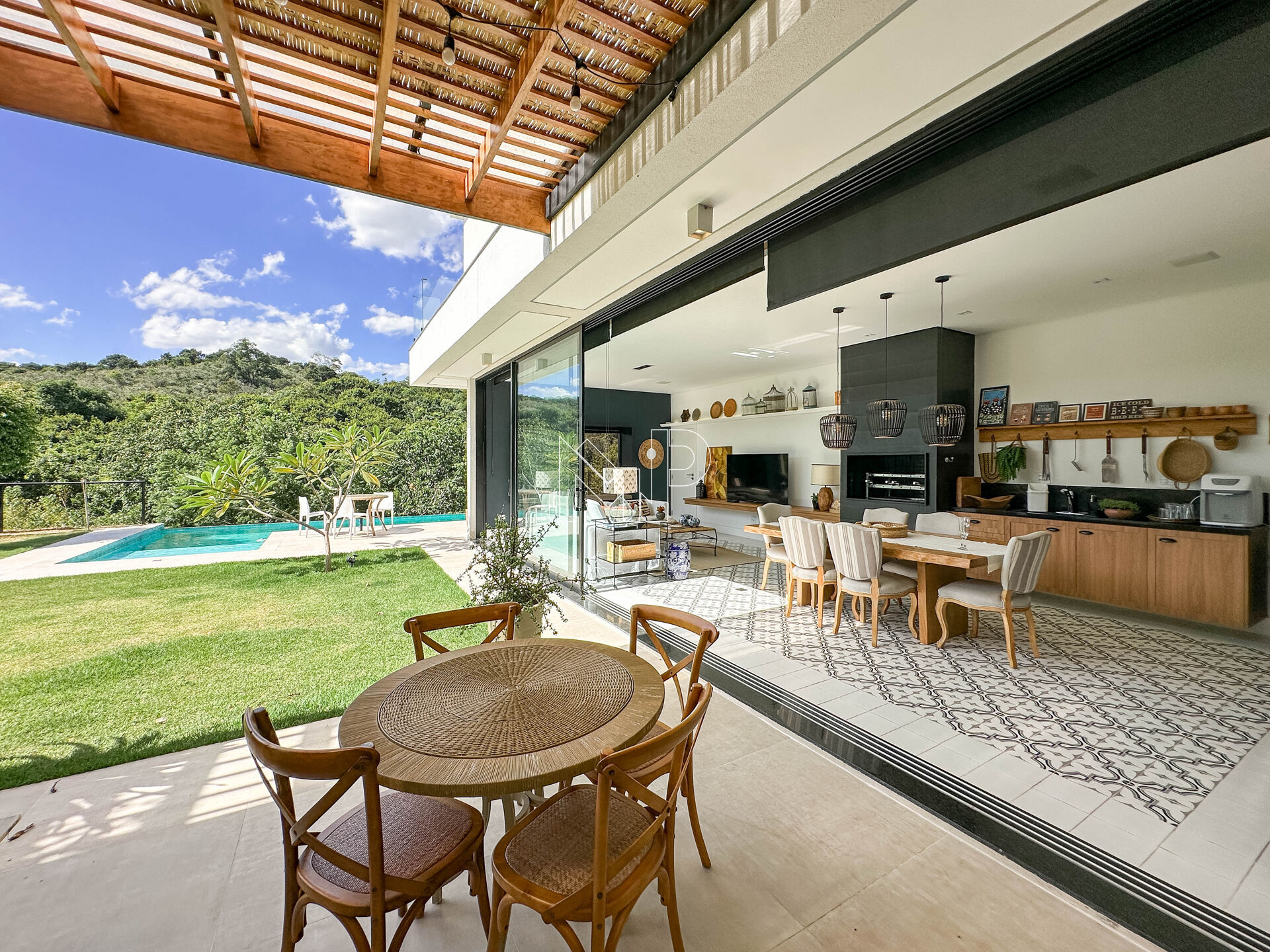 DIFERENCIAIS: mobiliada e decorada / planejados na cozinha e gourmet / projeto luminotécnico completo / aquecimento solar de água / ar condicionado nas suítes / piscina climatizada / som embutido no gourmet / vista livre para a natureza / fundos para área de preservação interna do condomínio