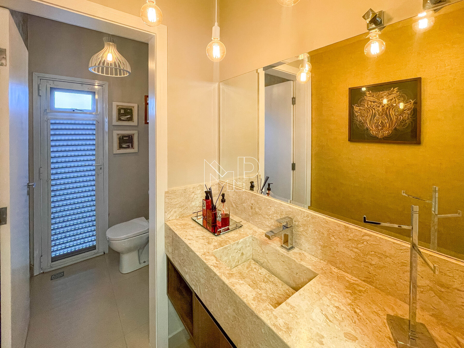 Sala de estar com ar condicionado , sala de jantar , cozinha com armários , escritório com armários , lavabo , lavanderia com armários , área gourmet com armários com churrasqueira a gás e ar condicionado , piscina com prainha aquecida .