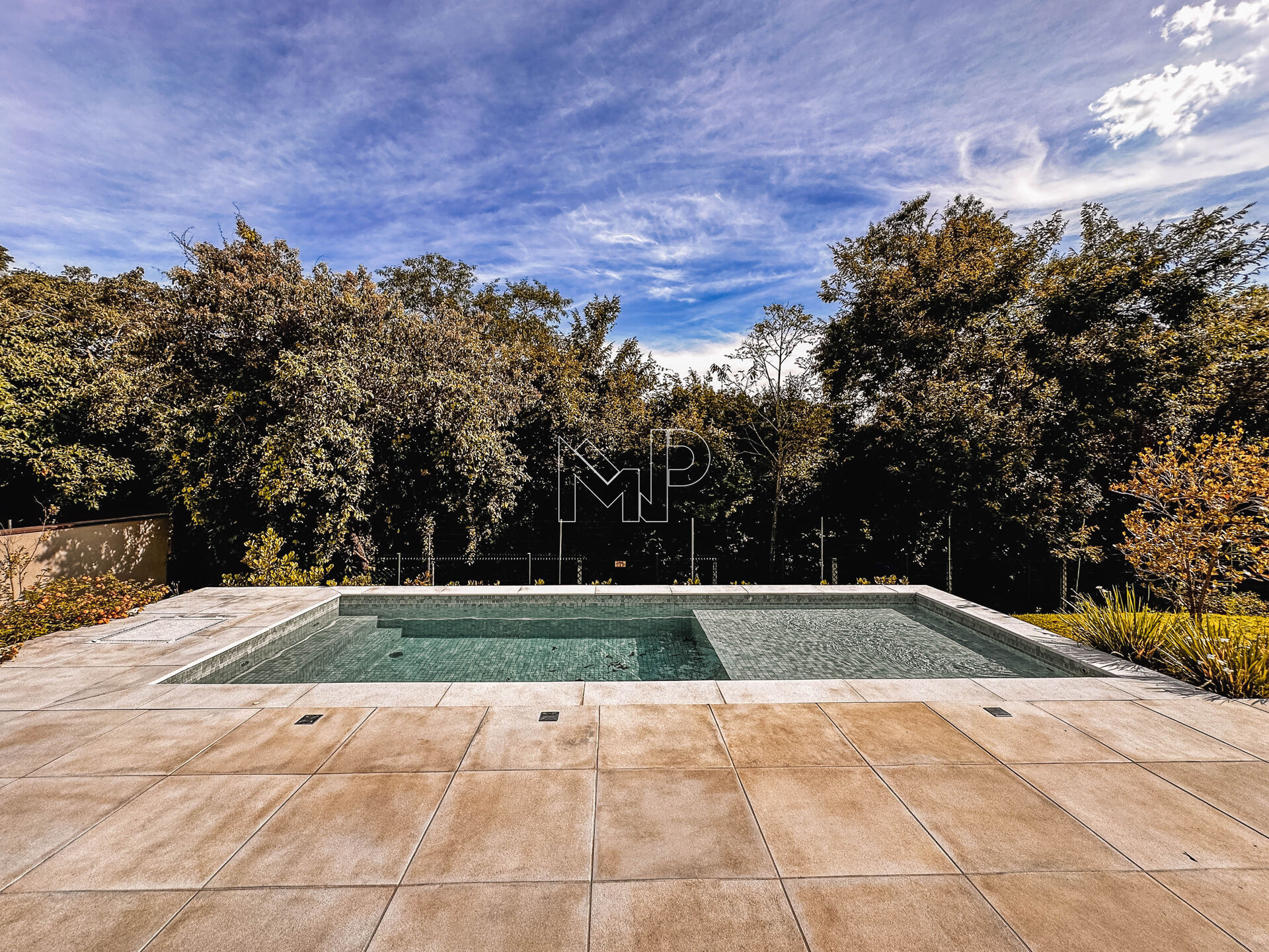 Piscina adulto com raia de 25 metros e borda infinita;