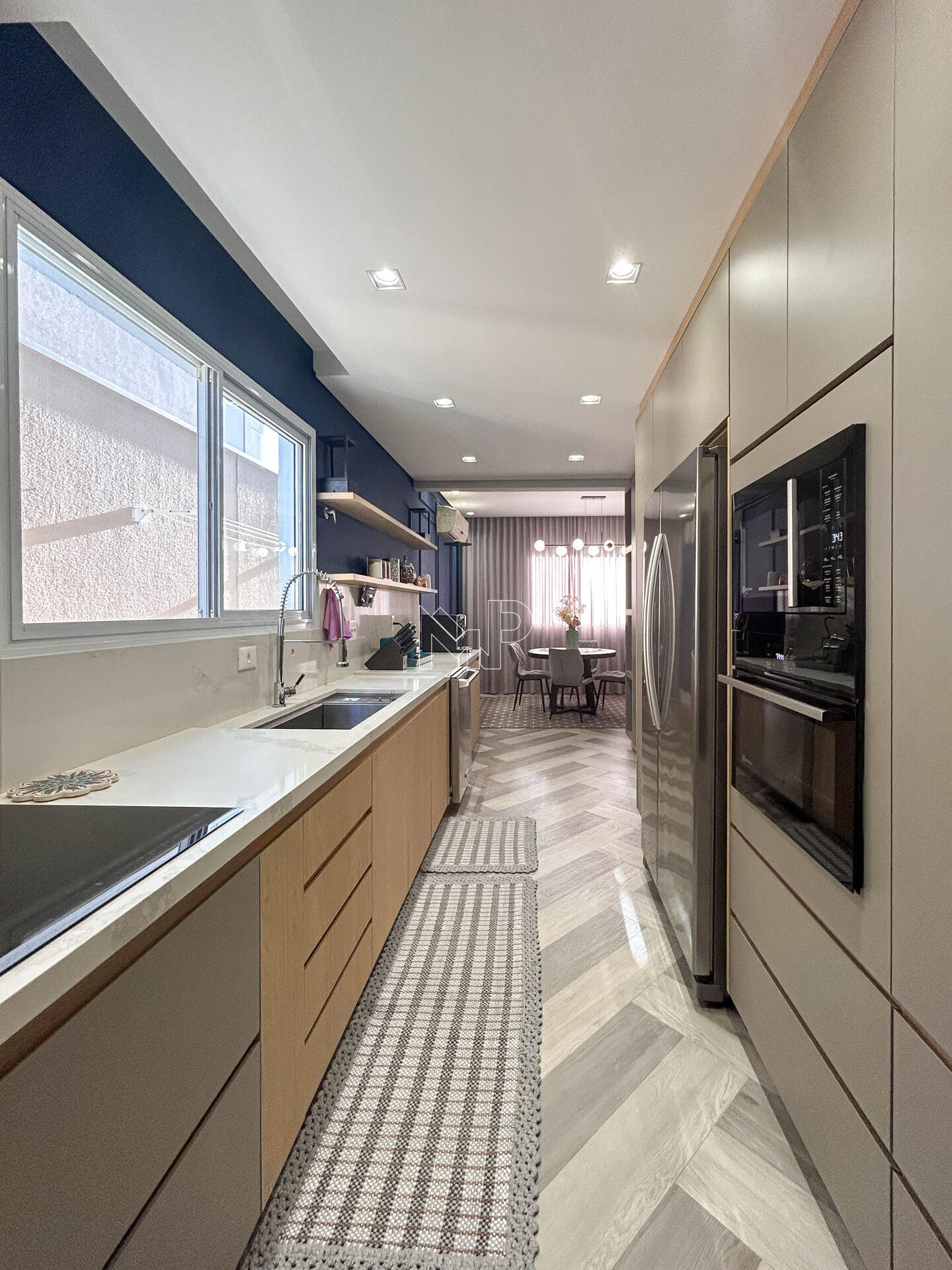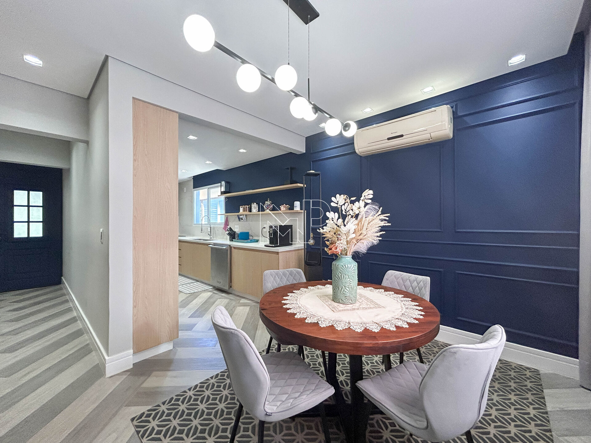 4 dormitórios, sendo 1 suíte com ar condicionado e 1 transformado em closet, wc social, lavabo, área social em conceito aberto (ambientes integrados)