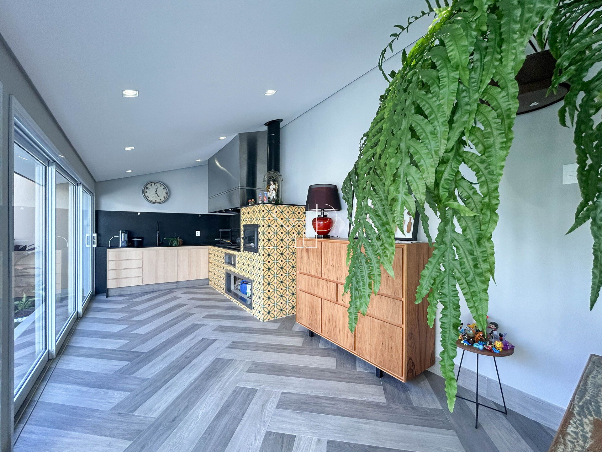 Sala 2 ambientes com ar condicionado, cozinha americana, amplo espaço gourmet completo, área de serviço, quintal e 4 vagas