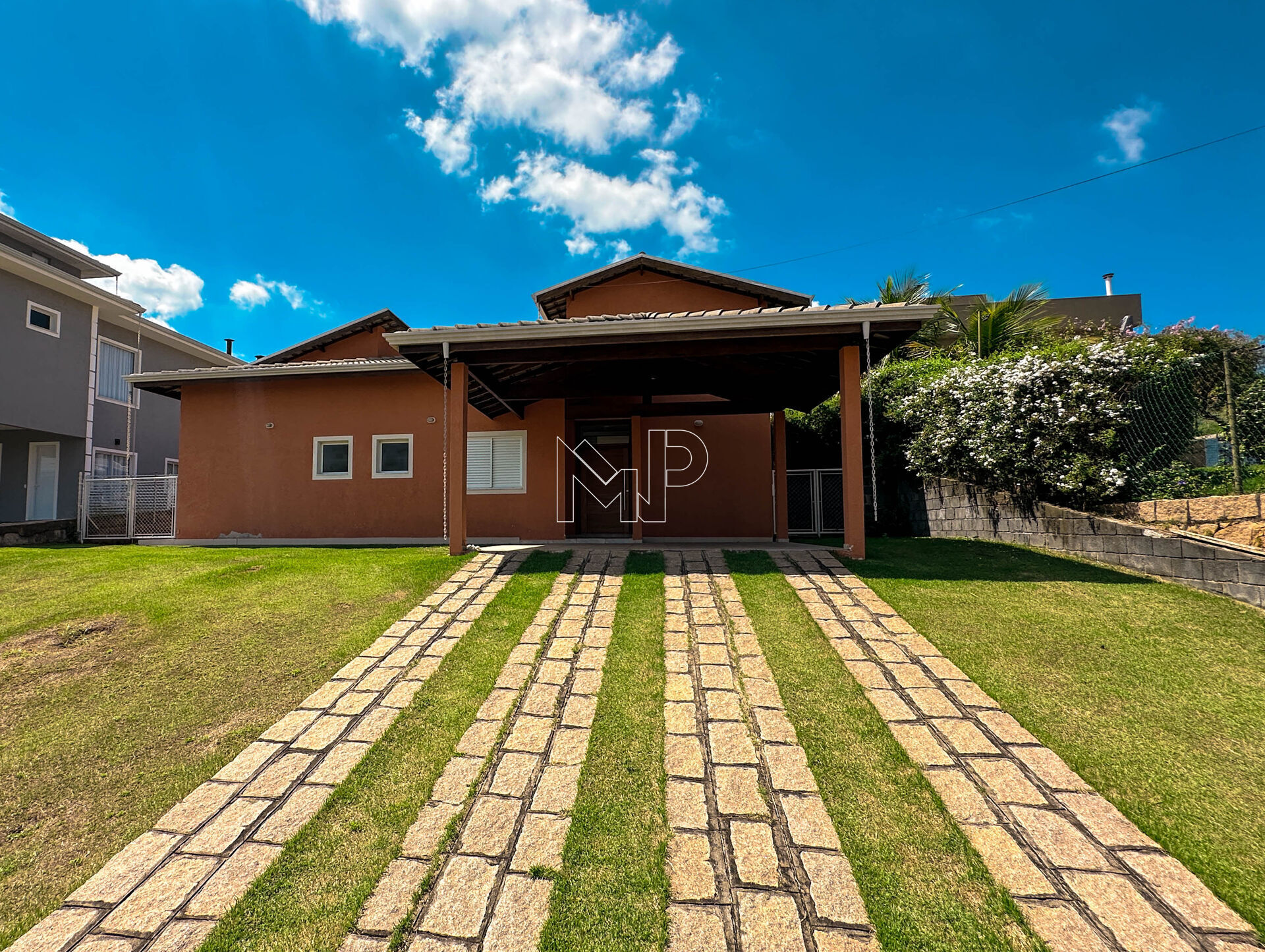 A casa possui uma posição solar privilegiada, com sol da manhã e tarde, além de contar com energia solar para maior economia e sustentabilidade.